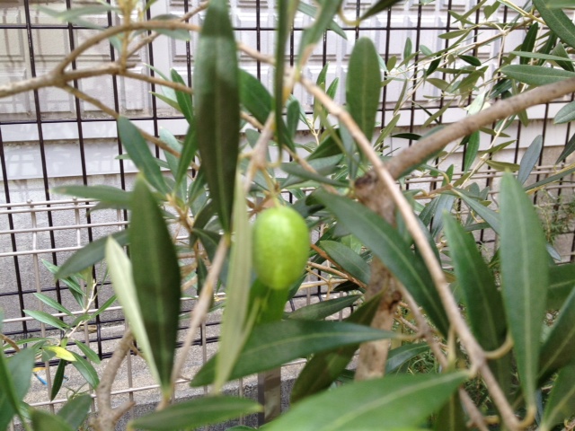 庭のオリーブの木、実が一つだけなりました(^^;;