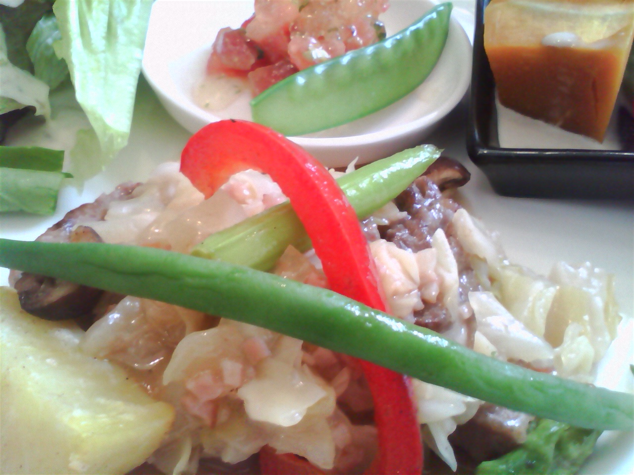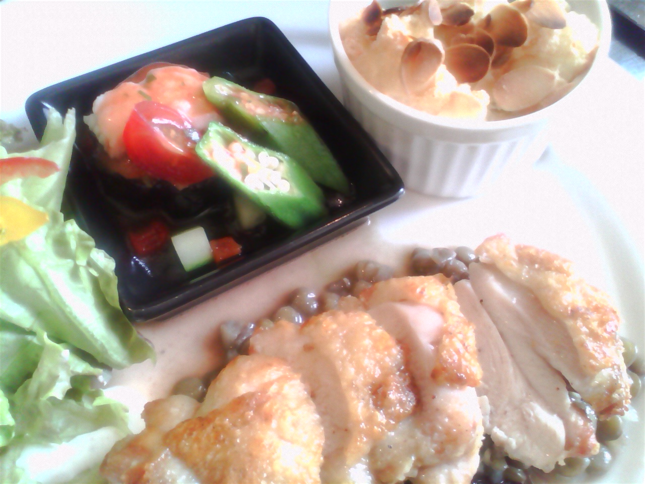 お野菜とオリーブのソースと合わせて![]()