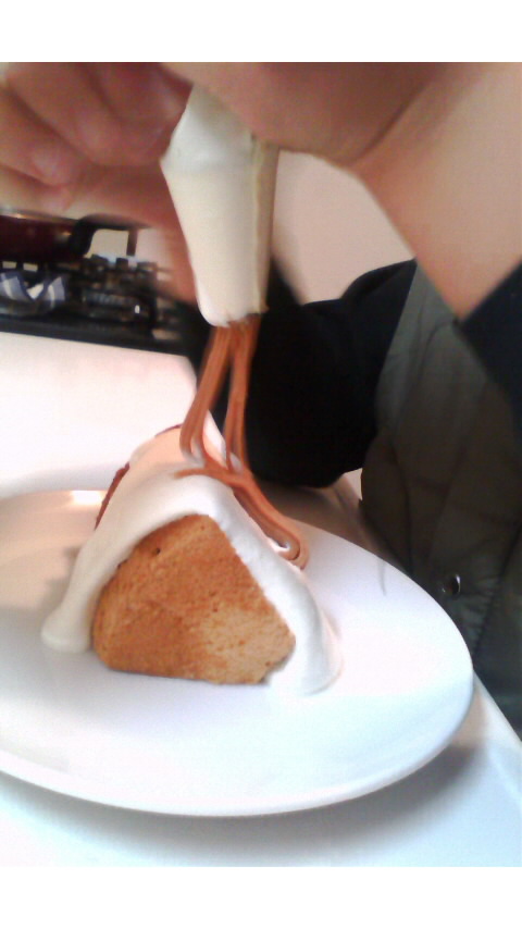 母があら炊き、父がお刺身の皮をバーナーで焼き
