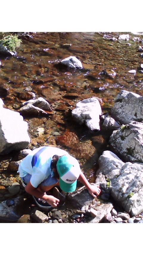 バンガロー前の川 夜は釣った魚や市場で調達したサザエなどでBBQをしました